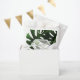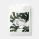 Ce design présente le Monstera tropical, également connu sous le nom de Plante suisse au fromage. Les beaux feuilles verts du Monstera complètent l'élégant centre en marbre géométrique. Design verdoyant idéal pour un mariage tropical de destination de plage. Un design unique de sac de faveur de mariage avec des éléments modernes. Des invitations de mariage et d'autres articles de papeterie sont également disponibles.