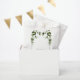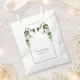 Ce design présente des feuilles d'eucalyptus rustiques. La verdure de l'eucalyptus est complétée par une élégante bordure noire. Les tons verts poussiéreux de la feuille d'eucalyptus créent une atmosphère rustique de jardin boisé de campagne. Elégant design de sac de faveur de mariage avec des éléments modernes. Des invitations de mariage et d'autres articles de papeterie sont également disponibles.