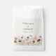 Notre Sac de Faveur Fleur sauvage Boho, personnalisé avec les noms de la mariée et du marié et orné d'un magnifique cadre à fond floral, ajoute une touche élégante à vos faveurs de mariage. Avec des herbes séchées rustiques, des feuilles délicats et des fleurs sauvages vintages, ce sac est un complément pratique et agréable à votre événement à thème bohème.