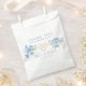 Elégant, moderne, boho, floral bleu mariage merci pour le sac avec le coeur de corde or monogramme, fleurs sauvages périwinkle et script de calligraphie simple.