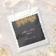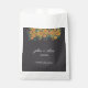 Une partie de la collection A Touch of Yellow Floral Peonies and Rose. Ce classique et élégant sac de faveur de mariage conçu avec des roses et des pivoines jaunes, feuilles botaniques et eucalyptus dans un arrière - plan brun foncé. Écrivez les détails de votre mariage dans des polices serif propres.