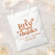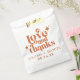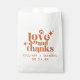 Ce sac moderne Retro Orange Wedding Favor Bag est une excellente façon d'ajouter un peu plus de personnalisation à votre grand jour. La palette de couleurs de l'orange brûlé donne un look rétro très moderne, mais vintage. Dites merci avec Amour & Merci.