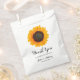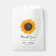 Sacs de faveurs de mariage sur le thème de l'automne personnalisés. Ce design présente un beau tournesol à l'aquarelle et une police de caractères élégante. Personnalisez facilement avec les noms des mariés pour des cadeaux uniques pour vos invités.