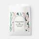 Offrez à vos invités un souvenir doux dans ces pochettes cadeaux élégantes avec une esthétique rétro vibrante. Le design présente un motif dynamique de volutes fluides et organiques dans une palette rafraîchissante de vert menthe et de rose pâle sur un fond crème éclatant. Un arc en crème gras offre un point focal sophistiqué pour les noms des mariés et la date du mariage, magnifiquement encadré par une bordure noire épurée pour une finition de haute qualité. Ces pochettes offrent un look chic et contemporain parfait pour un thème de mariage moderne. Ces pochettes personnalisées constituent un beau souvenir, apportant une touche de raffinement artistique à votre célébration spéciale.