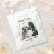 Un design de mariage romantique personnalisé et élégant avec photo pour remercier tous ceux qui ont envoyé leurs félicitations et célébré l'union du couple qui vient de se marier. Le design élégant des jeunes mariés est idéal pour remercier ceux qui ont envoyé leurs vœux de bonheur et assisté au mariage ou à la célébration de l'anniversaire de mariage. Remplacez l'image par une photo horizontale de la mariée et du marié. Le texte en écriture calligraphique peut être personnalisé avec les noms du couple. Vous pouvez changer la couleur, la taille et le type de police. Vous pouvez également changer la couleur du graphique du cœur "merci" en utilisant l'outil de conception. Ce design de reconnaissance spéciale est à vous pour le personnaliser comme vous le souhaitez. Le design minimaliste peut être transféré sur d'autres produits.