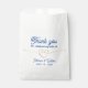 Elégant, moderne, minimaliste blanc et bleu mariage merci pour le sac avec coeur de corde or et script de calligraphie simple.
