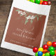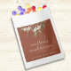 Ce design comprend un mariage en terre cuite un sac en papier de faveur modèle avec une élégante végétation fleurie, un script de calligraphie tendance, avec des lettres simples et minimalistes classiques, des noms de mariées et de mariés mariages, un feuillage feuille simple de fleurs blanches, une réception de mariage un service de faveur, un biscuits mariage bars desserts, une élégance simpliste rouille tons, un minimaliste classique un décor mariage design et créatif.