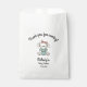 Petit sac de faveur pour votre baby shower. La faveur avec le script "Merci pour venir !", une douce fille en peluche aquarelle, le nom de la future mère et la date de la douche.