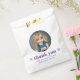Merci aux invités de votre fête d'anniversaire avec ce simple sac photo de faveur. Il a un modèle photo masqué en forme ronde et vous remercie texte sous la photo. De mignons coeurs de doodle ajoutent une touche de fantaisie à chaque extrémité du texte de remerciement. La couleur textuelle est violette et peut être changée en couleur de votre choix pour correspondre à votre décor de fête. C'est une belle façon d'ajouter une touche personnelle à la fête d'anniversaire de votre enfant.
