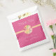 Des couleurs tropicales de pêche, de mangue et de vert apportent une toile de fond d'été romantique à vos sacs de faveur de mariage. Boho freestyle aquarelle peinture d'un bouquet de freesias et feuillage dans le badge central. Les couleurs et les polices sont personnalisables pour votre style; personnalisez les noms et le message. Très joli, joyeux look.