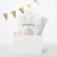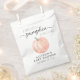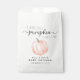 Un baby shower doux et neutre, merci pour le sac qui contient une aquarelle orange pastel d'un citrouille et "Un petit Citrouille doux est en route" écrit dans un mélange de typographie gris doux et un script élégant avec des swashes. Vous pouvez spécifier le sexe du bébé si vous le souhaitez (par exemple, "est en route").