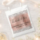 Créez votre propre baby shower merci pour les sacs de faveur. Fille fausse parties scintillant argent brillant sur le haut et le bas, sur un faux rose rose blush or brossé style métal ombragé style foil. La couleur de la police est le noir, mais d'autres couleurs comme le rouge foncé, le bordeaux ou le blanc seraient adorables. Vous pouvez également customiser les styles de police. Les couleurs principales sont le rose, le blush, l'or rose, l'argent, le gris, le noir et le blanc.