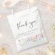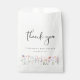 Cet élégant sac de baby shower de faveur présente des aquarelles de fleurs sauvages délicats et de "Merci" dans un script contemporain chic. Personnalisez avec le nom de la date de la future maman et de la douche.