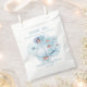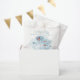 Personnalisé baby shower de baleines invités merci pour les sacs en papier. Design mignon en bleu et blanc, entièrement modifiable avec un message (merci d'avoir pris un bain d'amour dans l'exemple), le nom de la mère à être, et la date de la fête.