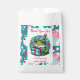 Merci très gentiment personnalisé pour avoir célébré avec nous les sacs de faveur d'anniversaire. Remplissez-les de bonbons pour vous remercier d'être venus. Une adorable grenouille dans un casquette d'anniversaire tenant un cadeau avec un mignon arrière - plan pois rose et turquoise. Ajoutez un nom dans la zone personnalisée.