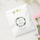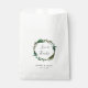 Les sacs de faveur de mariage tropical chic disent merci aux invités dans le style élégant de plage. Les sacs sont munis d'une couronne d'aquarelle de feuilles de palmiers verts et de feuillage, encadrant votre message personnalisé (montré avec "amour et merci"). Personnalisez avec vos noms et date mariage en dessous dans des lettres élégantes. Conçu pour coordonner avec notre mariage Palm Wreath et notre collection événementielle.