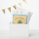 Mignons baby shower miel abeille thème sacs de faveur. Abeilles à miel dessinées à la main et peigne de miel avec arrière - plan bleu.