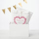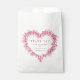 Mistletoe couronne de coeur tirant rouge et blanc mariage d'hiver Merci de préférence sacs. Ajoutez le nom de votre couple et la date du mariage en rouge vif et profond sur du blanc immaculé. D'autres couleurs et des articles mariages assortis sont disponibles. © Dessin et dessin du coeur du mistletoe par Sarah Trett pour www.mylittleedenweddings.com sur Zazzle.
