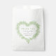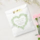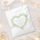 Mistletoe couronne de coeur dessin vert et blanc mariage d'hiver Merci pour les sacs de faveur. Ajoutez le nom de votre couple et la date mariage en vert, gris foncé classique sur blanc croustillant. D'autres couleurs et des articles mariages assortis sont disponibles. © Dessin et dessin du coeur du mistletoe par Sarah Trett pour www.mylittleedenweddings.com sur Zazzle.