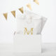 Monogramme personnalisé et sac cadeau de nom avec monogramme personnalisé en style de police serif classique or avec boîte de nom au milieu du monogramme. Sac cadeau parfait pour les vacances, mariage et toutes les occasions spéciales. Veuillez noter : Les détails de la feuille sont simulés dans l'illustration. Il n'y aura pas de métal sur ce produit.