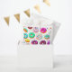 Des beignets délicieux à la crème et aux arômes colorés sur un motif arrière - plan blanc.