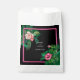 Une botanique tropicale néon rose moderne et rétro sur un arrière - plan noir. Un beau design mariage idéal pour l'été. Design plante tropical néon rose parfait avec palmiers, fleurs d'Hibiscus roses et fleurs de Plumerias Frangipanis. Les couleurs noir, rose et vert dominent ce néon rose tropical. La typographie calligraphique moderne contraste parfaitement avec le design mariage noir et rose. Un élégant design élégant de sac de mariage avec des éléments simples et modernes. Des articles de papeterie mariage correspondants et d'autres formats d'invitation de mariage sont également disponibles.