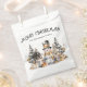 Ajoutez une touche festive à votre célébration des fêtes avec ce charmant sac de friandises de Noël présentant un design de bonhomme de neige à l'aquarelle ravissant. Le bonhomme de neige, vêtu d'un chapeau haut de forme noir classique et d'une écharpe dorée, se tient parmi des arbres de fête, des accents dorés et des cadeaux emballés le long du bas, apportant une atmosphère hivernale fantaisiste et cosy à vos faveurs de fête.