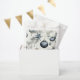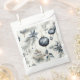L'image montre d'élégants ornements de Noël bleu et or sur un arrière - plan blanc, complétés par un poinsettia bleu.