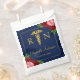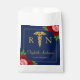 Nurse graduation with pink and red roses against a navy blue background. Gold caduceus and script typography.