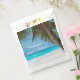 Océan, plage tropicale, sable, bord de mer, mariée et marié rustique, mariage moderne sacs de faveur. Une simple typographie, un script. Personnalisez-le avec vos détails.