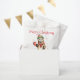 Ce charmant sac de favoritisme de Noël comporte une adorable loutre debout, vêtue d'un casquette rayé rouge et vert festif avec un pom-pom moelleux et un foulard rouge douillet avec une frange blanche. La loutre tient une tasse rouge ornée d'un motif de flocon blanc, remplie d'une boisson à la crème fouettée. Au-dessus de la loutre, l'accueil "Joyeux Noël" est affiché en gras, en lettres stylisées contre un arrière - plan blanc et propre. Le texte est entièrement personnalisable, vous permettant de personnaliser le message pour répondre à tout sentiment. Des éclaboussures d’aquarelle douce dans les bleus et les verts apportent une touche artistique à l’arrière - plan, créant une scène de vacances chaleureuse et accueillante, parfaite pour envoyer les salutations de saison.