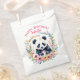 Un mignon ours de panda entouré de fleurs rose et orange et de vert feuillage aquarelle illustration fête d'anniversaire fille cadeau personnalisé sac de faveur.