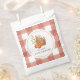 Ce mignon sac de faveur baby shower fille dispose d'un panier de pique-nique avec des pommes et des fleurs sur un arrière - plan blanc avec des chèques de buffle rouge. Personnalisez-le selon vos besoins. Vous pouvez trouver des produits correspondants dans mon magasin.