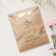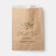 Il s'agit d'un élégant sac cadeau mariage avec feuillage vert poussiéreux sur une texture de papier artisanal beige. Typographie élégante et personnalisable en vert foncé. C'est un design sophistiqué et élégant que vous pouvez éditer du texte, des images et des polices. Ce design évoque une élégance simple et organique.