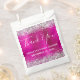 Créez votre propre bébé douche merci pour les sacs de faveur. Fille fausse parties scintillant argent brillant sur le bord supérieur et le bord inférieur, sur une fausse feuille de métal brossé rose chaud style sombre. Vous pouvez également customiser les styles de police. Les couleurs principales sont le rose chaud, le fuchsia, le gris, l'argent, le noir et blanc.