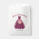Le sac de faveur moderne Quinceañera présente des peignoirs à fleurs et à parties scintillant sur arrière - plan rose pâle. Personnaliser avec les détails de l'anniversaire