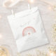Cette adorable marque de baby shower fille en faveur sacs caractéristiques une aquarelle rose arc-en-ciel avec étoiles et un coeur.