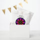 Sacs Fêtes Fêtes de NOËL colorés, montrant un motif arbre multicolore contre un riche arrière - plan de cercle NOIR, avec un MONOGRAM jaune au centre, qui est PERSONNALISABLE pour vous permettre d'ajouter votre initiale ou de supprimer complètement. Il y a un texte PERSONNALISABLE Joyeux Noël et un nom d'espace réservé, que vous pouvez personnaliser avec votre propre libellé. Idéal si vous recherchez un design coloré et dynamique de sacs de faveur pour la saison des fêtes festives. Éléments correspondants disponibles.