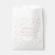 Ce sont des sacs de faveurs de fête de mariage avec des pétales de rose roses et du prosecco !