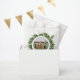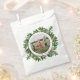 Un beau cadeau de Noël festif sac de faveur qui comprend votre photo customisée positionnée au milieu encadré par une couronne d'Acorn et de baies sèches rouges. Les mots "Joyeux Noël et Bonne Année" apparaissent en haut du design et du nom de famille et de l'année en bas.