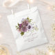 Soigné & élégant mariage faveurs avec la police calligraphie et magnifique bouquet fleuri frais. Couleurs de pourpre et d'aubergine avec feuillage vert mousse.