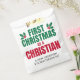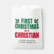 Élégant PREMIER NOËL EN Sac Favori CHRÉTIEN avec TEXTE ET DATE PERSONNALISABLE. Le design montre la typographie en sans serif verte et rouge de Noël avec des éléments saints rouges et verts. Un grand sac de Favor festif pour un nouveau croyant chrétien. Vous pouvez PERSONNALISER LE TEXTE avec votre nom, vers biblique préféré, ou d'autres textes et année (ou supprimer). Idéal comme les marchandises de Noël de l'église ou de large portée favorisent les cadeaux pour les nouveaux croyants célébrant leur premier Noël chrétien. Offres assorties disponibles.
