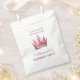 Entrez dans le monde enchanteur des contes Pourcentages et Fairytales avec ce sac de fête d'anniversaire Princess, personnalisable, conçu pour ajouter une touche de magie à chaque célébration! Une façon parfaite de dire Merci à vos amis et à votre famille pour assister à la célébration inspirée de la Cendrillon de votre Petite Fille. Ce joli sac de faveur est orné d'une couronne rose clouée de bijoux étincelants, et de lettres Parties scintillant roses contre un arrière - plan blanc et croustillant.