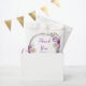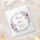 Beautiful birthday party favor bag with a purple and silver faux glitter frame with floral flower arrangements. The words can be changed to suit your own details or requirements