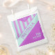 Moderne Pastel Turquoise Pink Stripes Favor Bag est une fête parfaite pour l'anniversaire des filles ou toute occasion. Les couleurs pastel douces turquoise et rose créent une ambiance passionnante au design. Il se compose d'une bande turquoise pastel qui souligne le nom du célébrant tandis qu'à droite en bas se trouvent les détails de l'anniversaire sur un arrière - plan rose foncé. Le "merci" sur un triangle inversé, arrière - plan rose foncé accentue l'arrière - plan des bandes verticales.