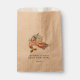 Sacs en papier kraft à thème racwfish personnalisés pour votre prochaine fête d'ébullition de langoustes, barbecue ou événement de fruits de mer. Il présente une illustration en aquarelle de deux langoustes au-dessus du dîner et des algues. En-dessous, il y a des endroits pour vos informations uniques sur l'événement.