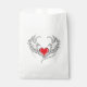 Coeur rouge peint de façon artistique avec ailes d'ange gris, décoré de contour lisse noir.