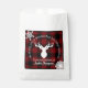 La conception du produit présente une silhouette d'un renne sur un motif classique à plis de buffle rouge et noir. Combinée à votre propre texte personnalisé, cette composition crée des sacs de Noël maison rustiques, modernes et uniques.