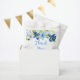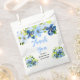 Ce magnifique sac de faveur de baby shower de mariée élégant présente des fleurs de bébé bleu aquarelle et de bleu nuit avec du feuillage. Le texte combine une écriture manuscrite et des polices serif pour un look stylé et moderne. C'est parfait pour un baby shower de mariée rustique de printemps ou d'été.