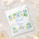 Ce magnifique sac de faveur de baby shower de mariée élégant présente des forget-me-nots bleus aquarelle, des marguerites et du feuillage. Le texte combine une écriture manuscrite et des polices serif pour un look stylé et moderne. C'est parfait pour un baby shower de mariée rustique de printemps ou d'été.